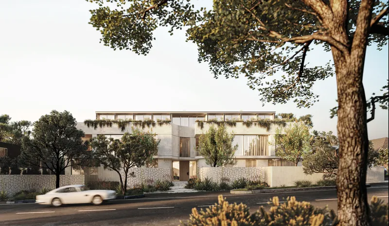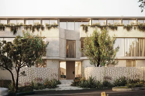 Thoughtful landscaping around the boundaries enriches the community, engaging the streetscape and fostering a sense of belonging. These elements also frame views from the main living areas and the use of natural tumbled stone adds visual appeal and a distinct identity to the project.