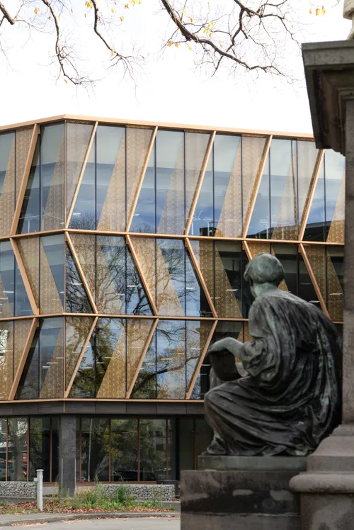 In collaboration with Mana Whenua artists and the service engineers, glass patterns and external shading were designed and developed to optimise daylighting, shading, and thermal gain to reduce energy demand. Low carbon solutions include exposed mass timber stairs, timber internal framing, wood-wool ceilings, full timber trim including all skirtings and handrails, and low carbon certified internal finishes throughout.