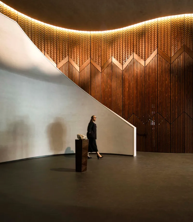 Te Iho is the product of a design collaboration with mana whenua artists Len Hetet (Te Ātiawa, Ngāti Tūwharetoa, Ngāti Maniapoto, Ngāti Apa) and Manukorihi Winiata (Ngāti Raukawa, Te Ātiawa, Ngāti Awa, Ngāti Tūwharetoa).