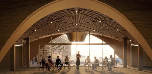 The Te Ao Māori approach of respecting the natural environment has influenced the materiality of the project and its embodied carbon outcomes. The facades use natural terracotta, and the primary structure of the museum, exhibition space, and civic whare is constructed in locally sourced mass timber. On-site energy generation, natural ventilation, and rainwater harvesting further reduce the project's impacts on the environment.