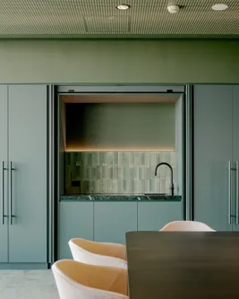 Future-ready, the workplace prioritises flexibility, collaboration, and connectivity. High-quality event and meeting spaces support both in-person and virtual ways of working, while acoustically treated rooms and AV-equipped spaces cater to small group needs. A focus on co-working is balanced with informal lounge areas and adaptable furniture settings, offering employees choice and variety in how and where they work.